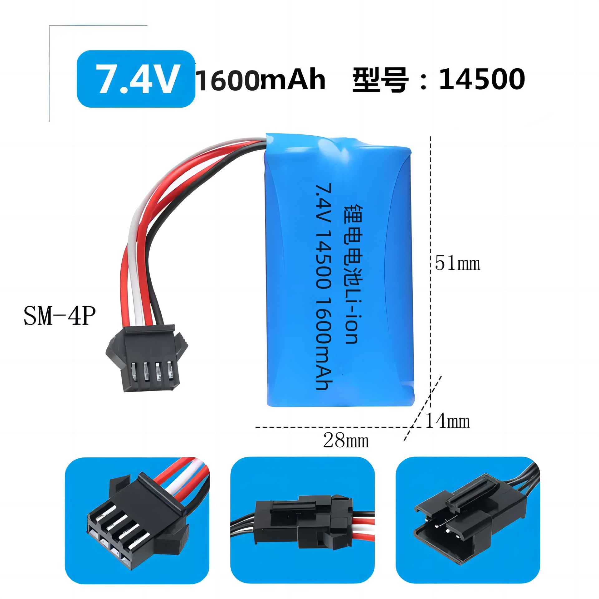 - Model: 7.4V Long 14500-1600mAh