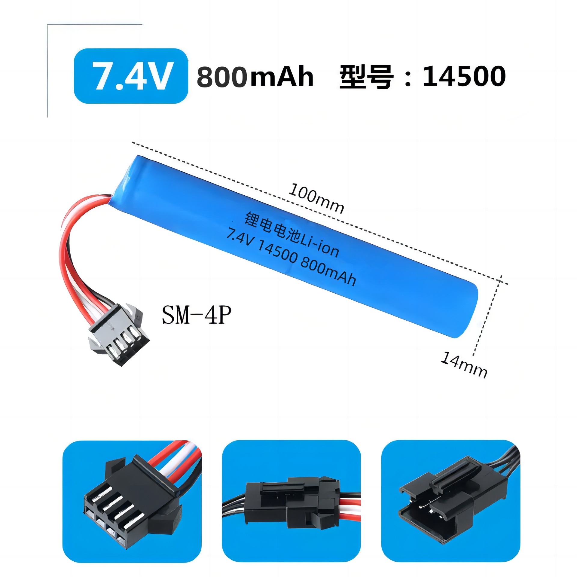 - Model: 7.4V 14500-800mAh
