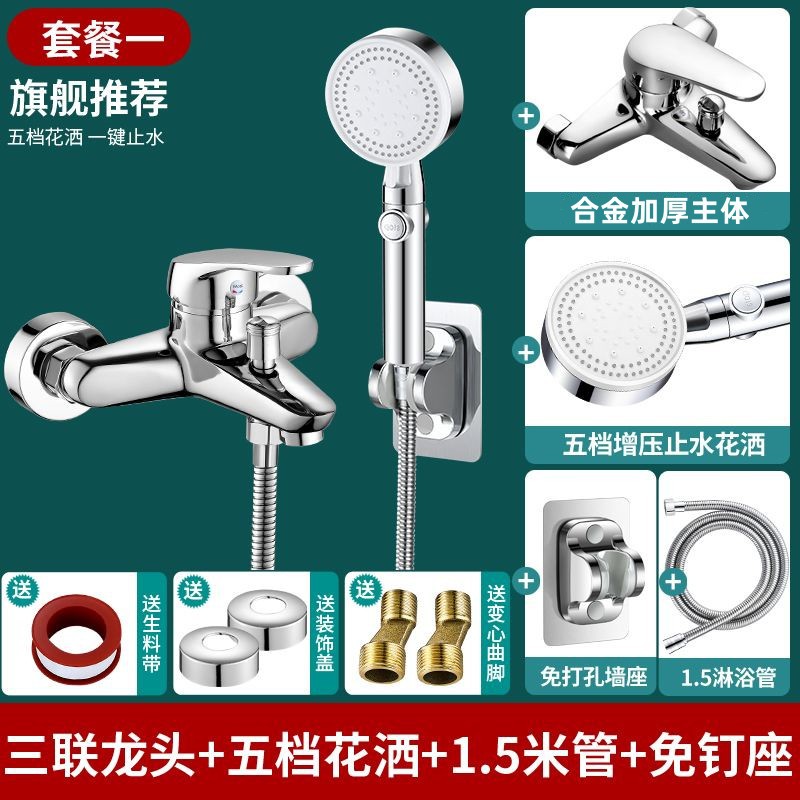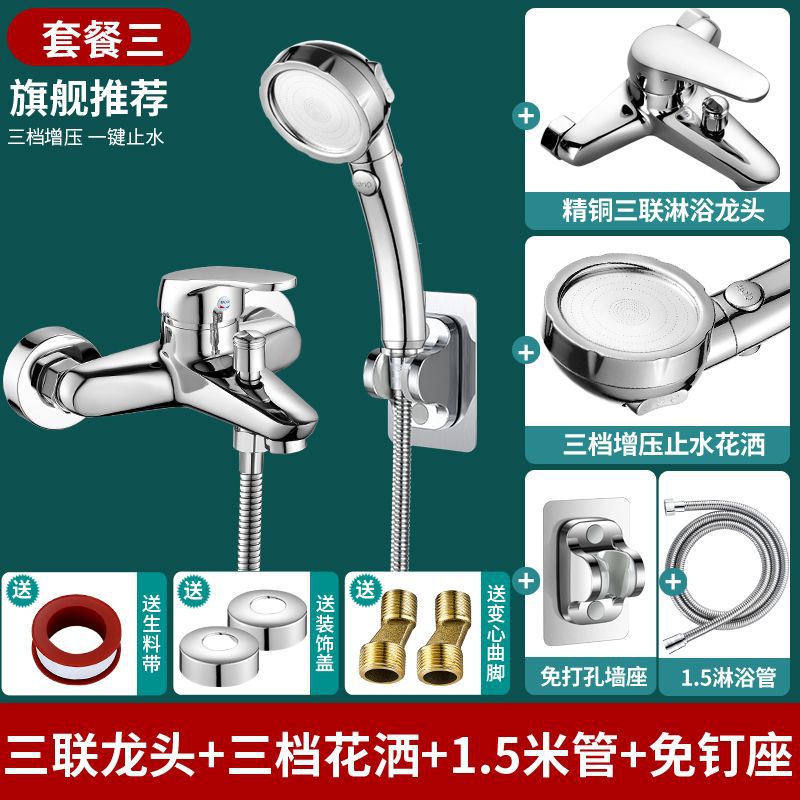 - 規格:銅塞羅三聯+免釘座+1.5M淋浴管