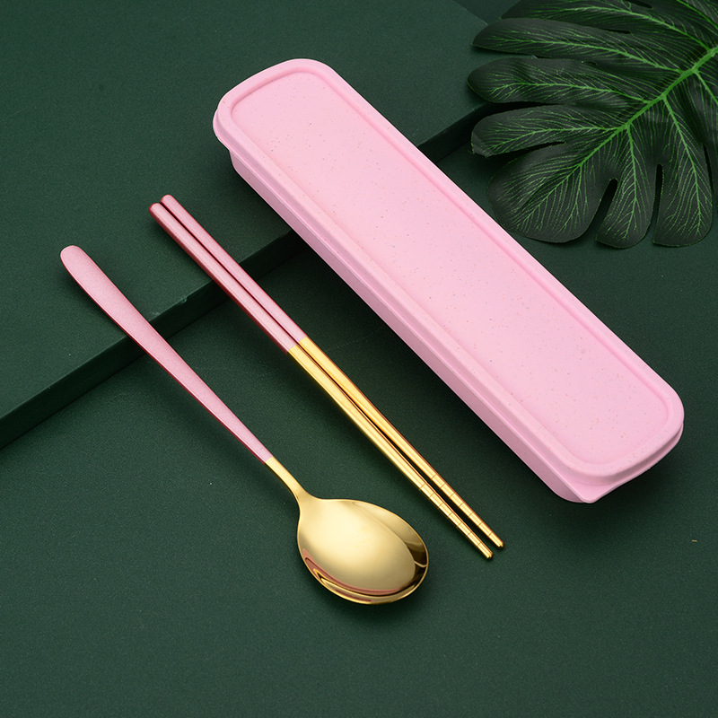 - 規格:粉金三件套(勺+叉+筷+盒+卡扣)