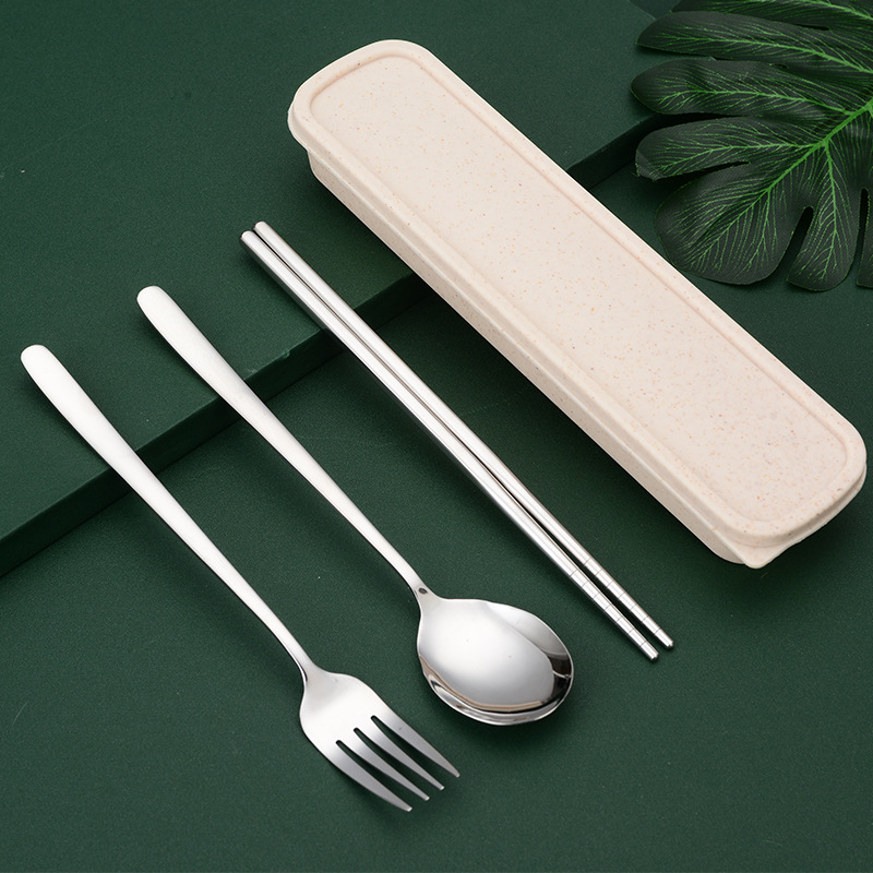 - 規格:銀色三件套(勺+叉+筷+盒+卡扣)