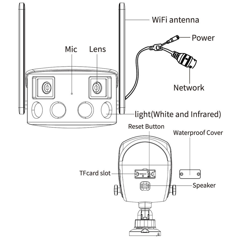 - Specification: Dual-Eye Mosaic 180° Giant Screen Camera 4MP + Power