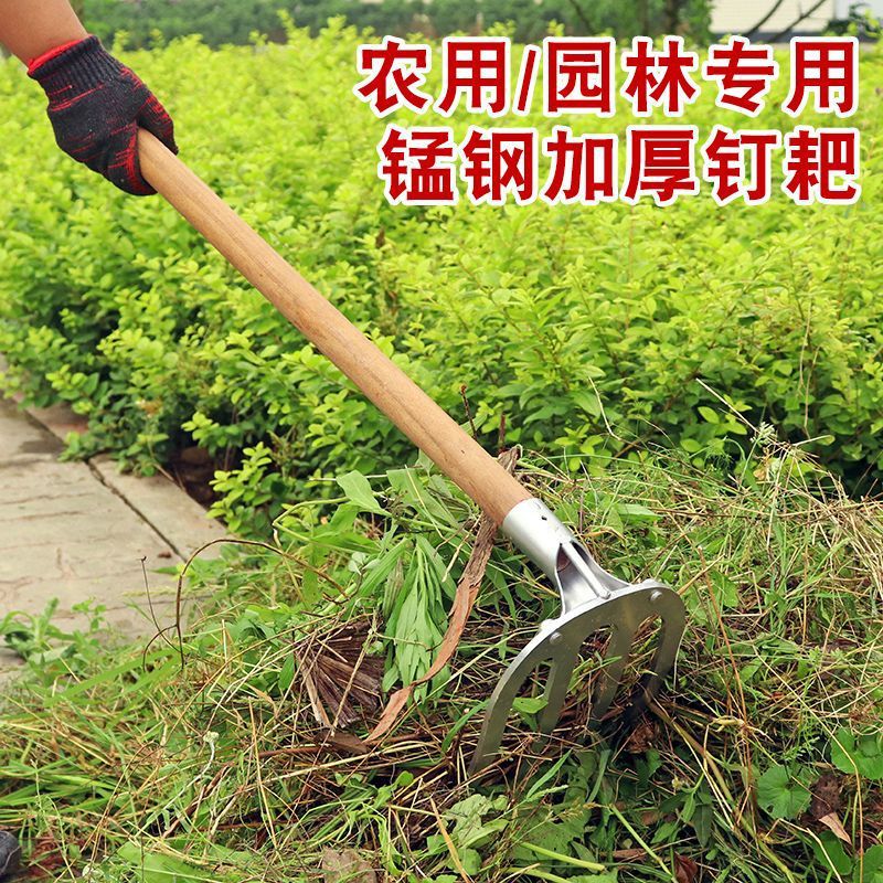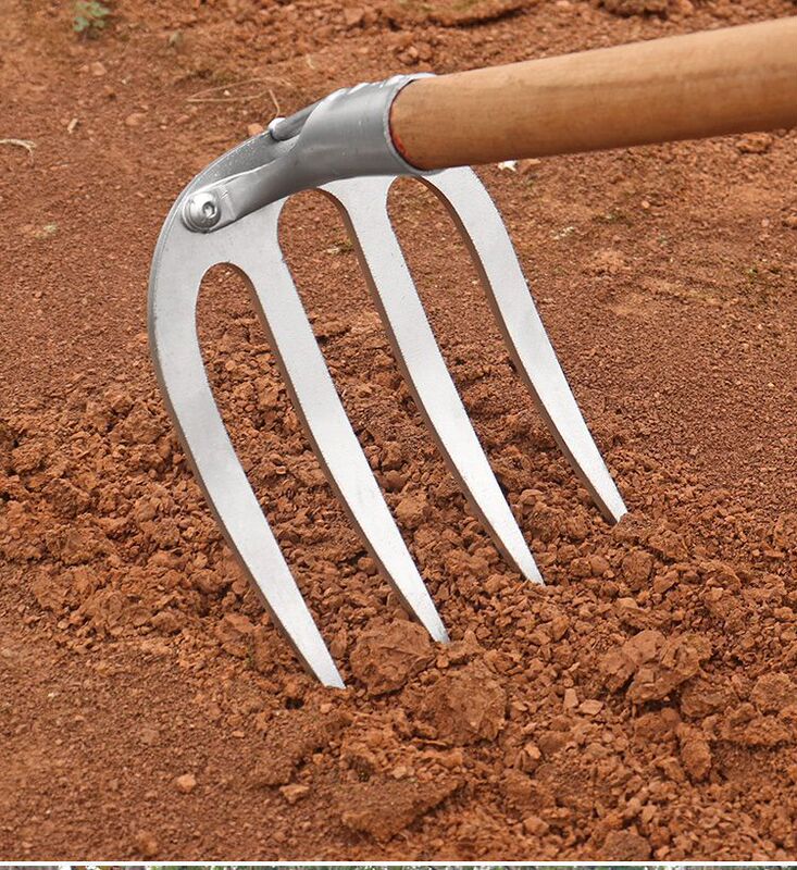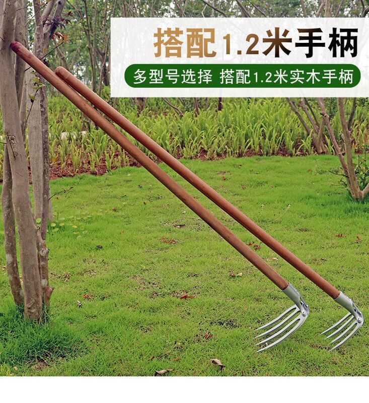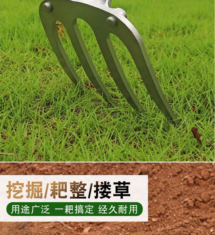 - Model: Thick steel rake with four teeth, nail rake agricultural tool, iron rake agricultural tool, tilling and loosening soil, raking grass, multi-tooth leveling ground rake