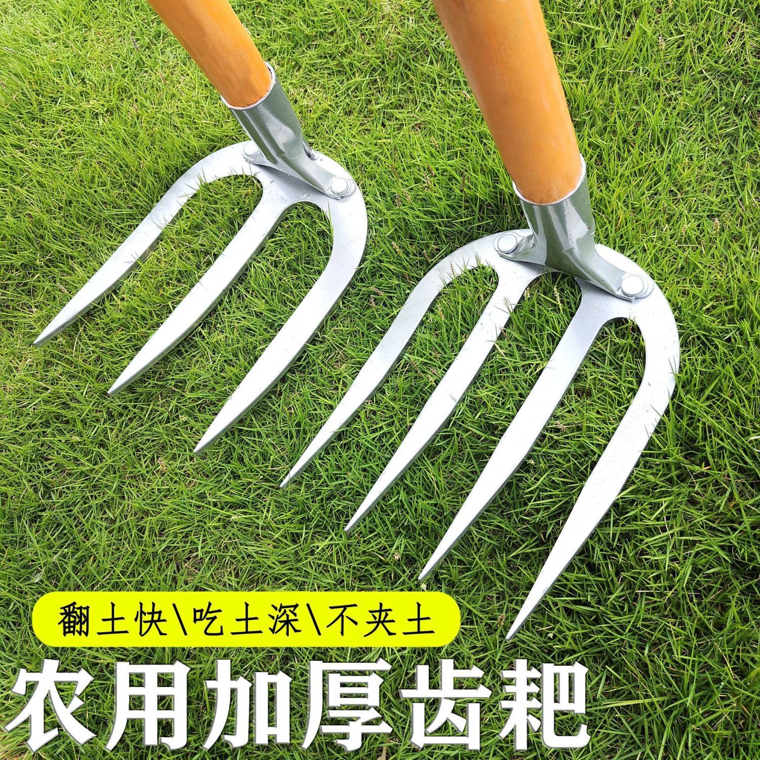 - Type: Thick steel rake with four teeth, nail rake agricultural tool, iron rake agricultural tool, tilling and loosening soil, raking grass, multi-tooth leveling ground rake
