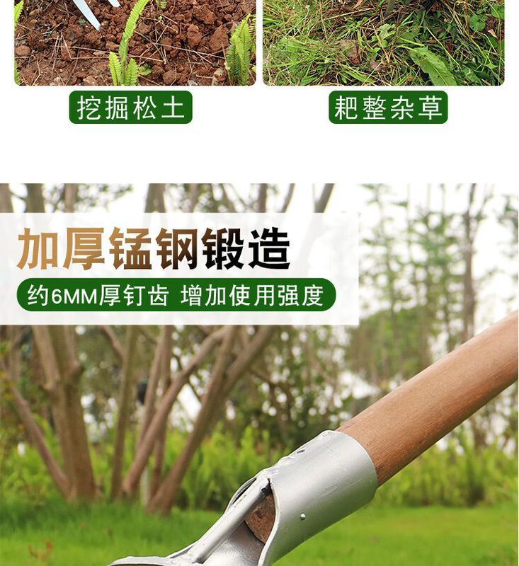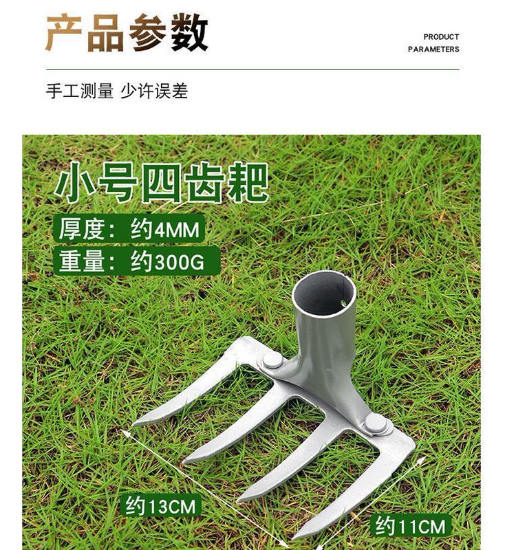 - Applicable range: Thick steel rake with four teeth, nail rake agricultural tool, iron rake agricultural tool, tilling and loosening soil, raking grass, multi-tooth leveling ground rake