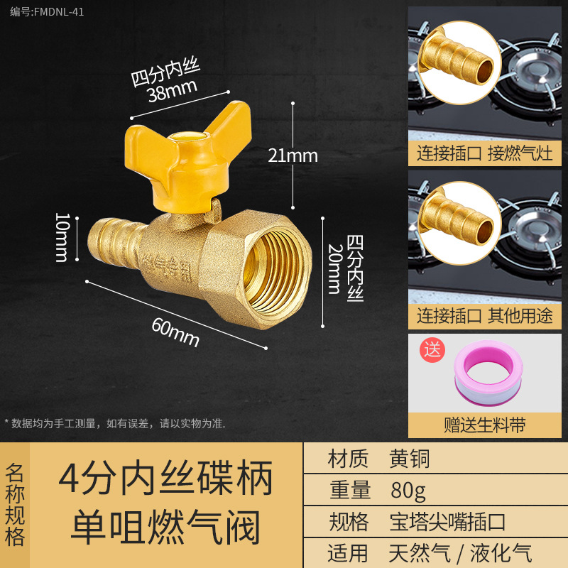 - Specification Model: 4/16-inch Internal Spline Disc Handle Single Outlet Gas Valve