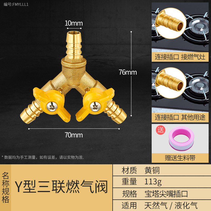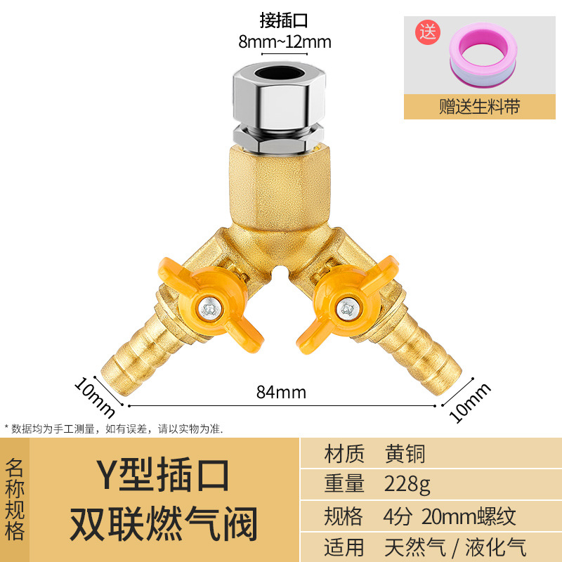 - Specification Model: Y-type Three-way Plug to Dual Outlet (Gas Pressure-reducing Valve 8-12mm Plug)
