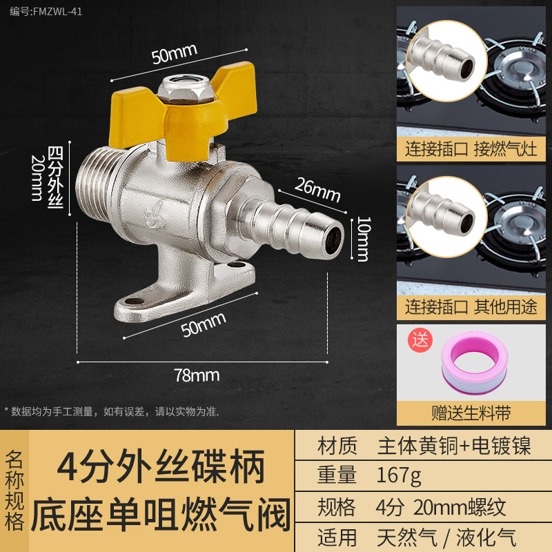 - Specification Model: 4/16-inch External Spline Disc Base Single Outlet Gas Valve