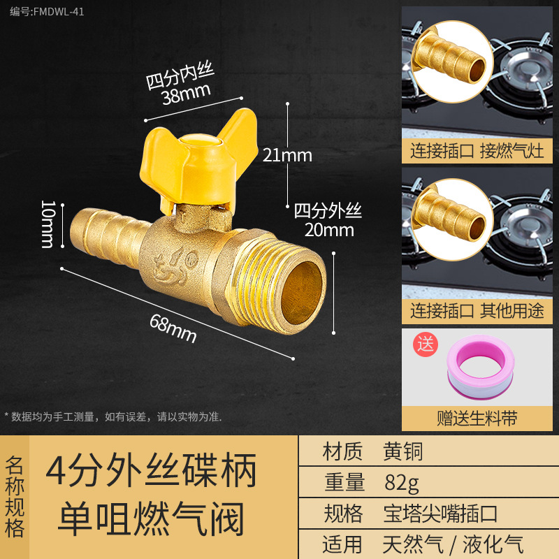 - Specification Model: 4/16-inch External Spline Disc Handle Single Outlet Gas Valve