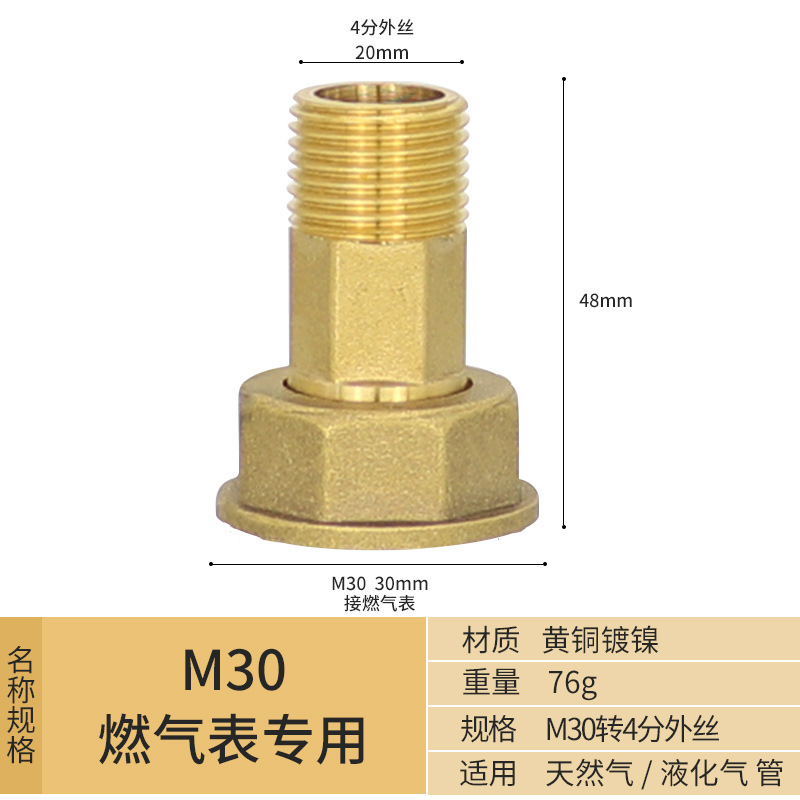 - Specification Model: Gas Meter Special Connector M30 to 4/16-inch External Spline