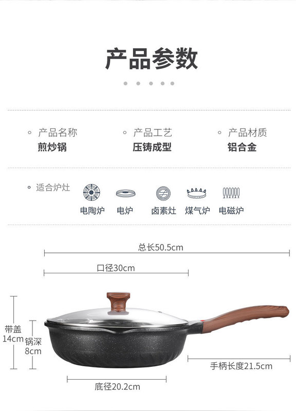 - 規格:29.5CM帶導油口深煎炒鍋麥飯石
