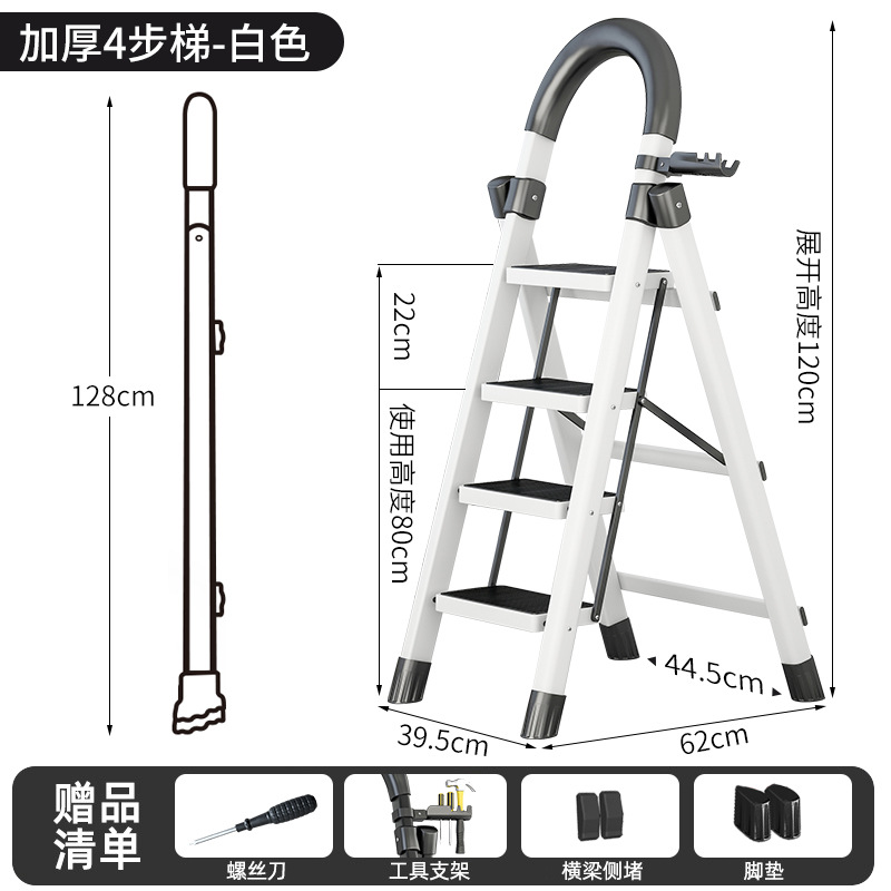 - Step Count: Upgraded Safety Clip Thick Carbon Steel White Four-Step Ladder