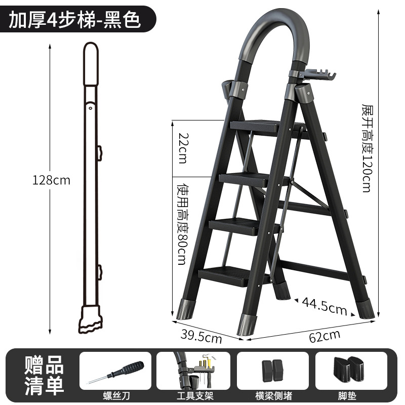 - Step Count: Upgraded Safety Clip Thick Carbon Steel Black Four-Step Ladder