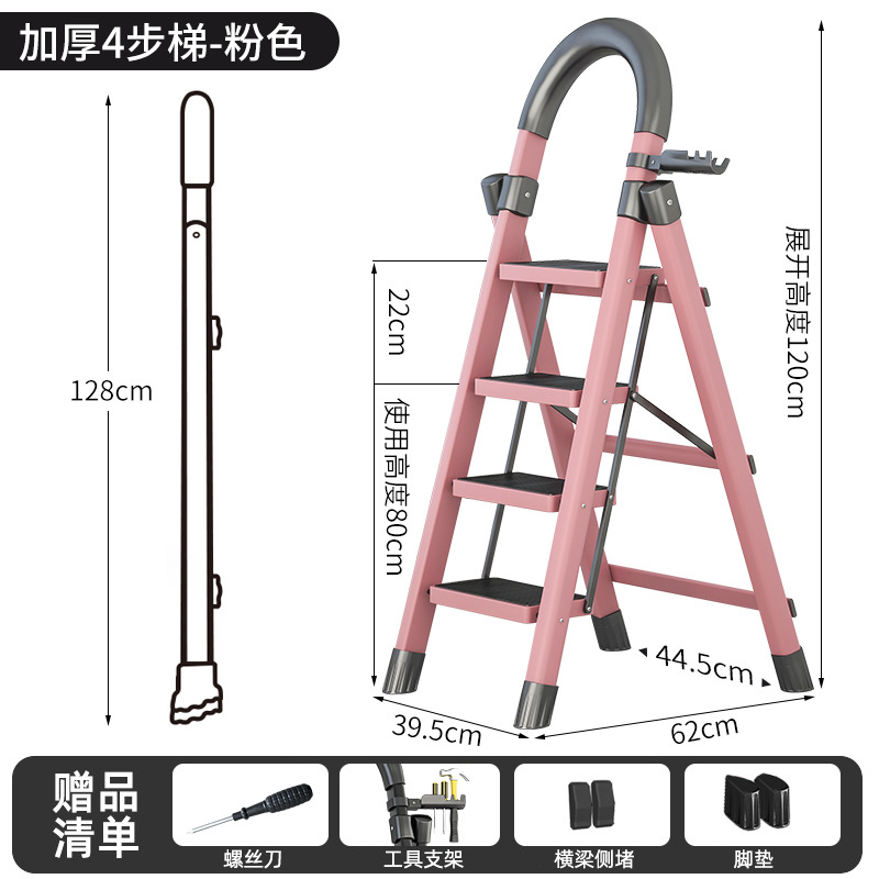 - Step Count: Upgraded Safety Clip Thick Carbon Steel Pink Four-Step Ladder