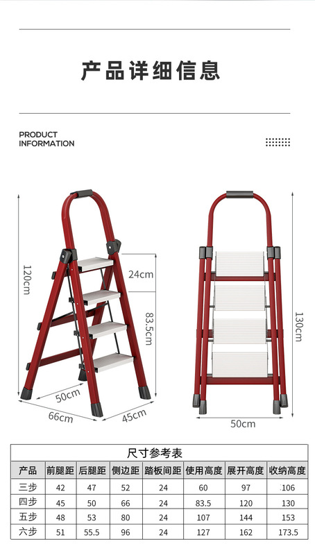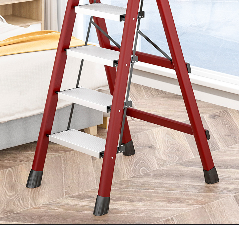 - Step Count: Upgraded Safety Clip Thick Carbon Steel Red Four-Step Ladder