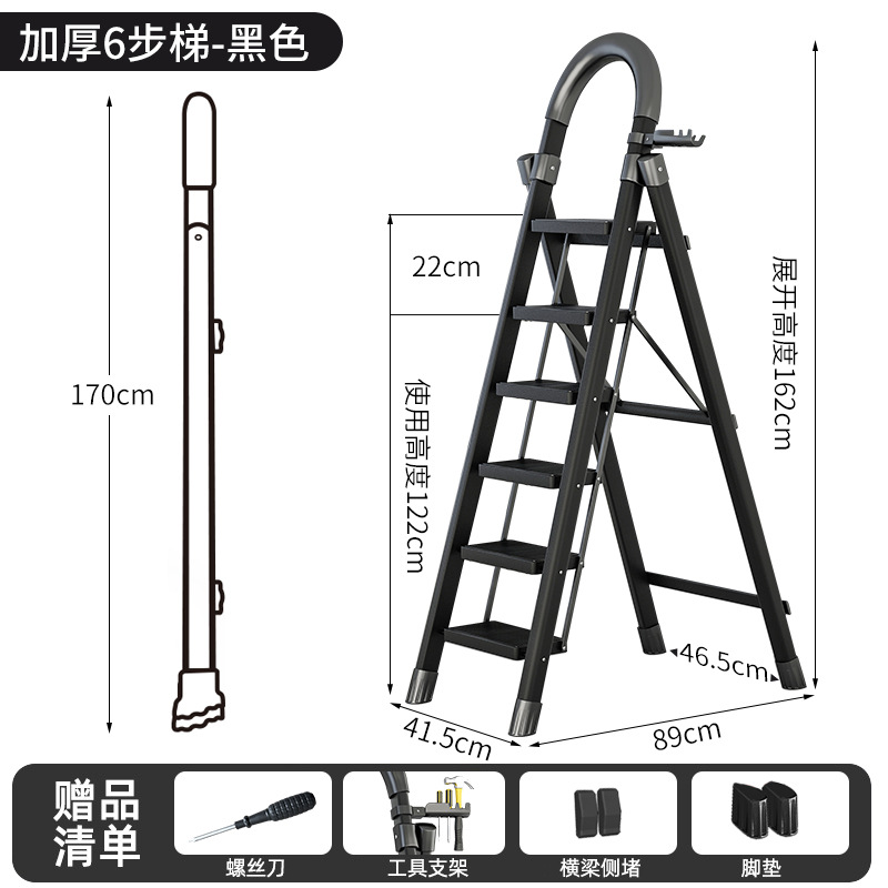 - Step Count: Upgraded Safety Clip Thick Carbon Steel Black Six-Step Ladder