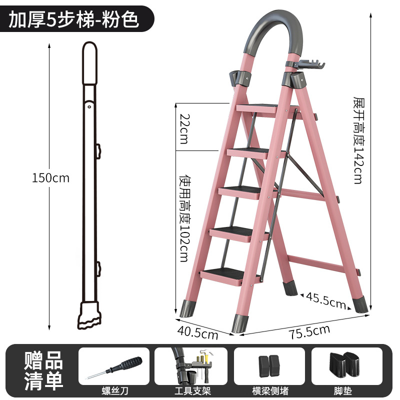 - Step Count: Upgraded Safety Clip Thick Carbon Steel Pink Five-Step Ladder