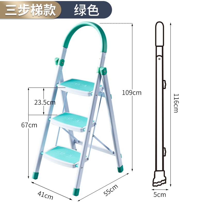 - Number of steps: U-shaped thick green three-step ladder