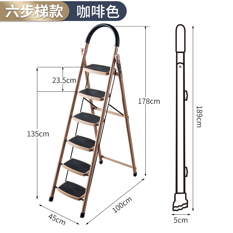 - Number of steps: U-shaped thick coffee six-step ladder