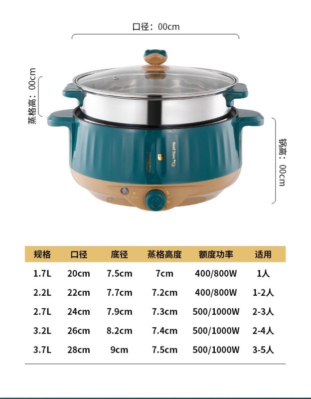 - Electric Heating/Stir-fry Hot Pot Function: Hot Pot