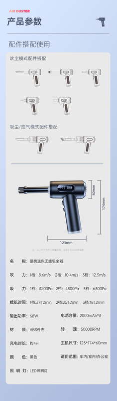 - Vacuum Suction: 6000PA