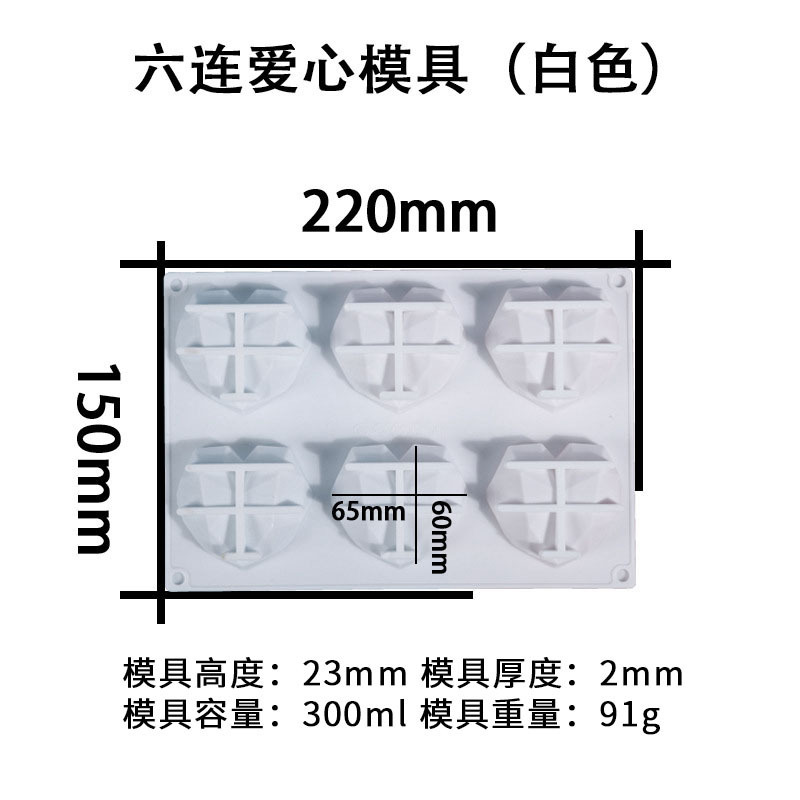 - 規格:六連愛心模具(白色)