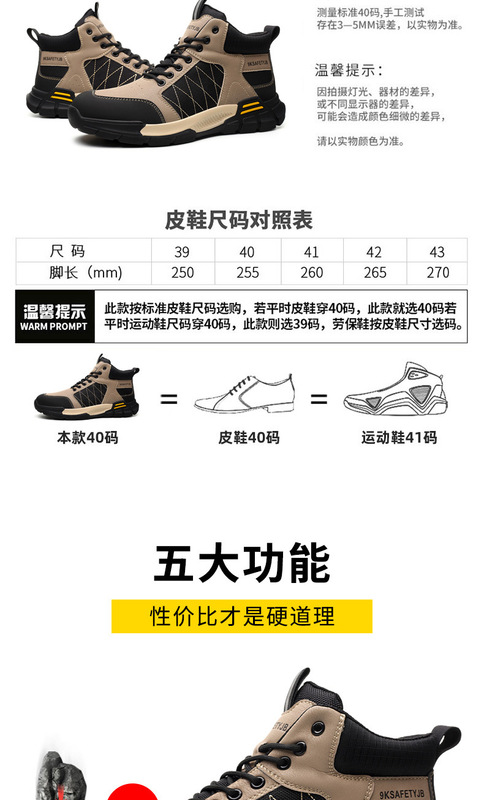- 功能:鋼包頭防砸鋼中底防刺穿鞋底加厚耐磨防滑