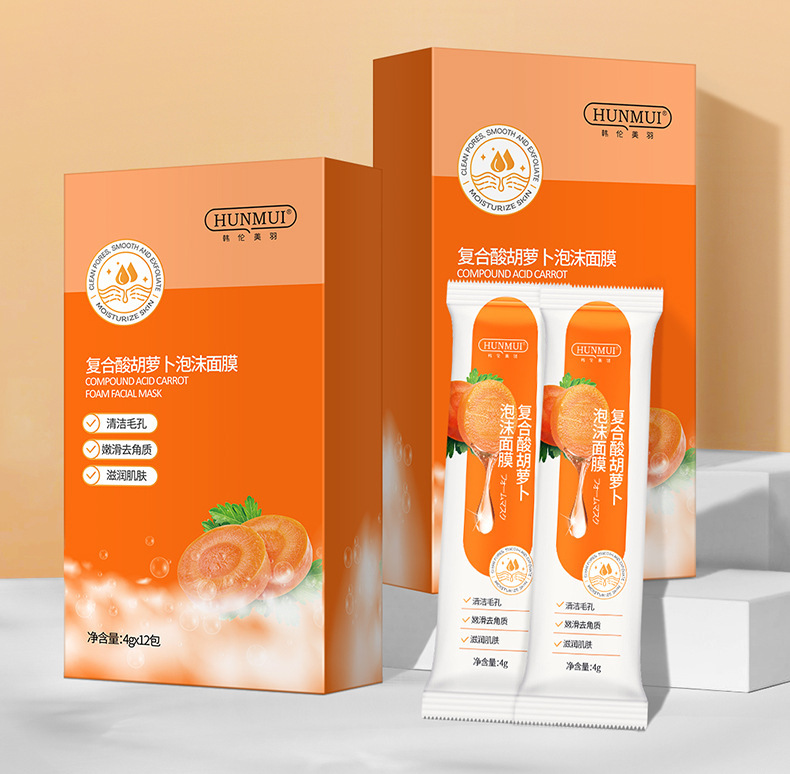 - Product Specification: Complex Acid Carrot Foam Mask 4g*12 Packs
