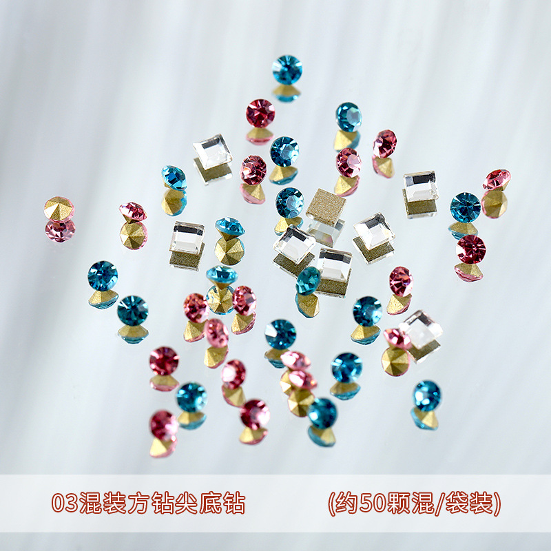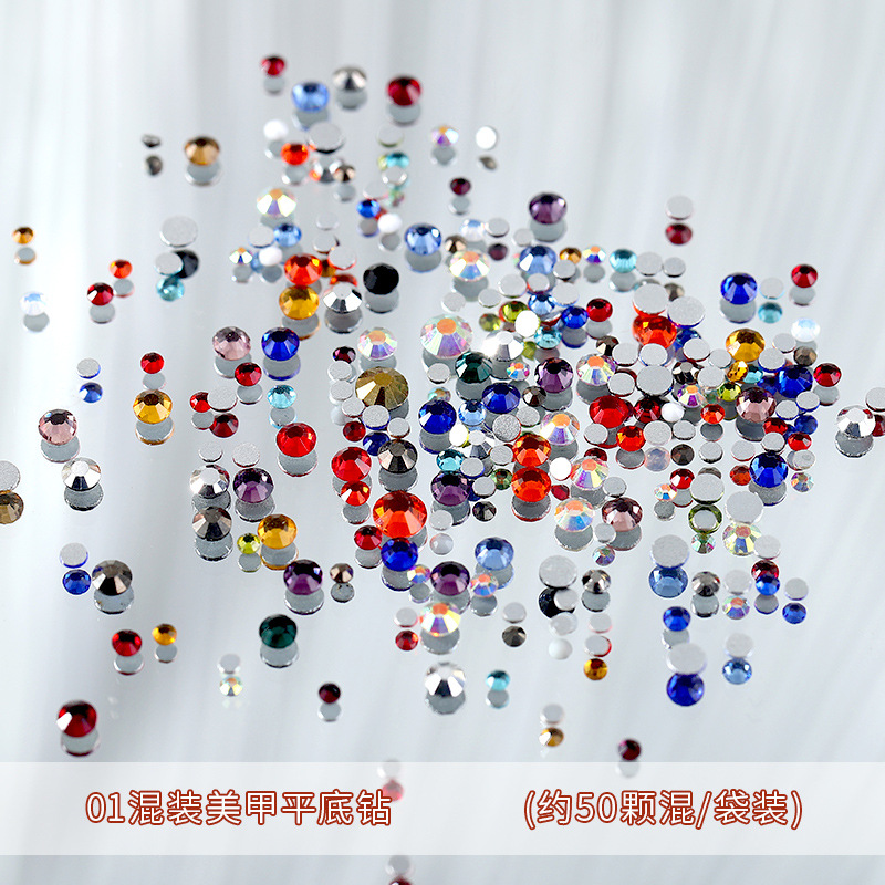 - 規格類型:50顆彩色平底圓鑽混裝