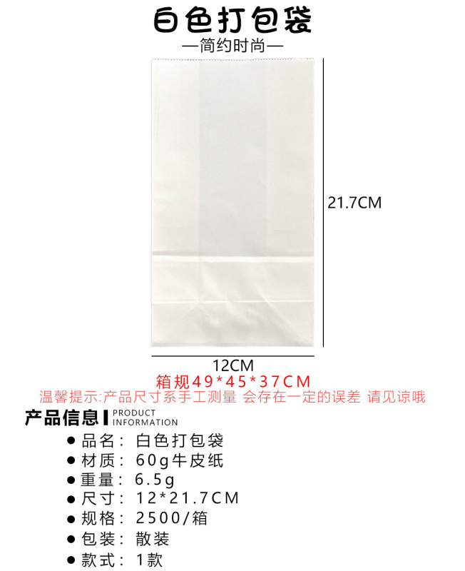 - Specification model: 1# white paper bag*SH1371