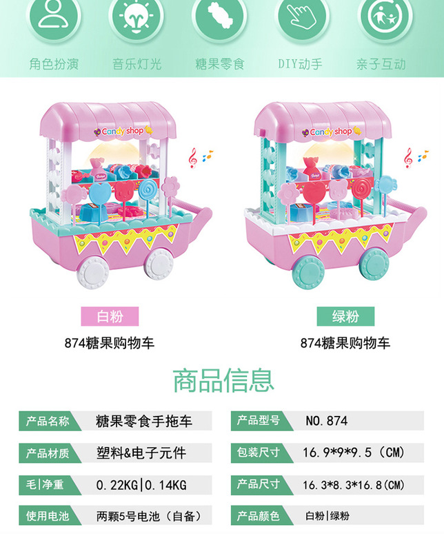 - Featured_functions:Electric_light_music,Mini_candy_cart_shape,DIY_assembly
