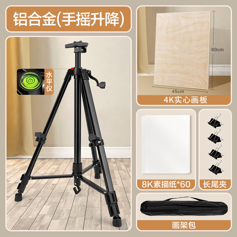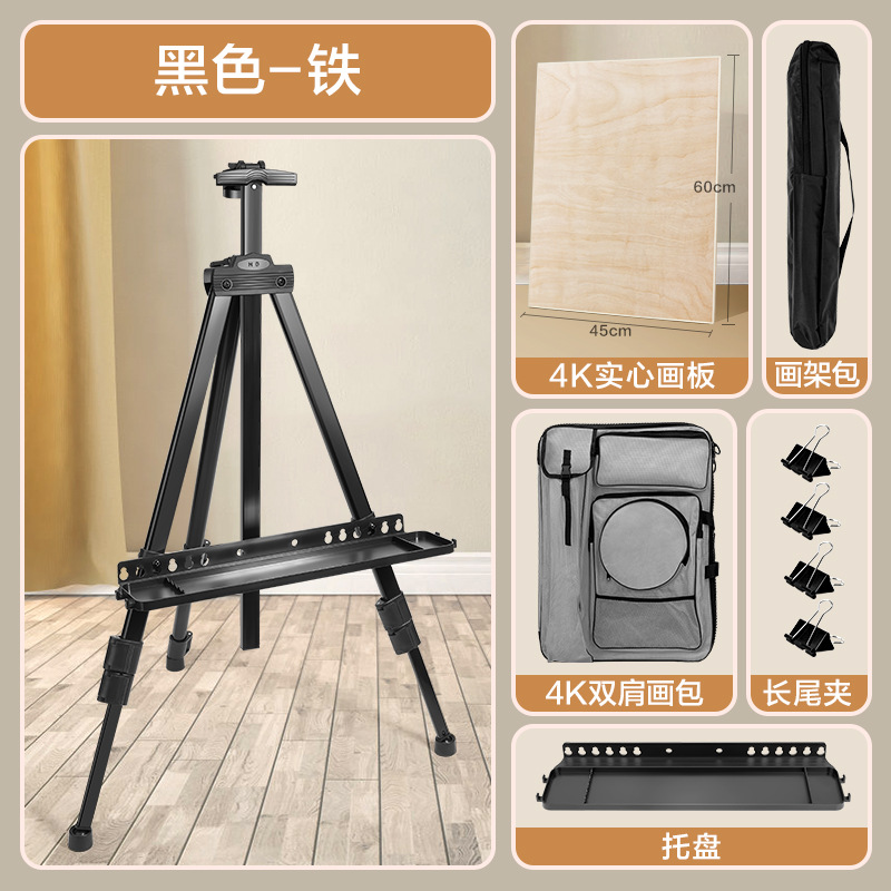 - Specification: 【Full Painting Set】Black/Iron Easel (No Crank) + 4K Solid Canvas Board + Tray + Dual Shoulder Bag