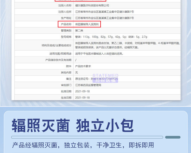 - 藥(械)准字:蘇械注准20172140525