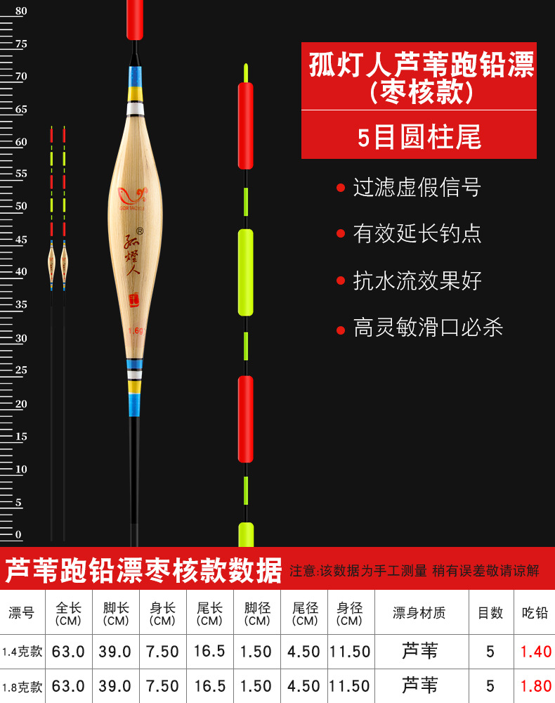 - Specification: Reed Bobber枣核型 Large 1.8g Lead