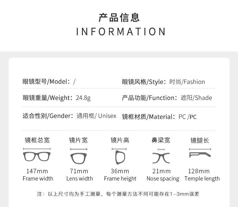 - 鏡架材質:PC