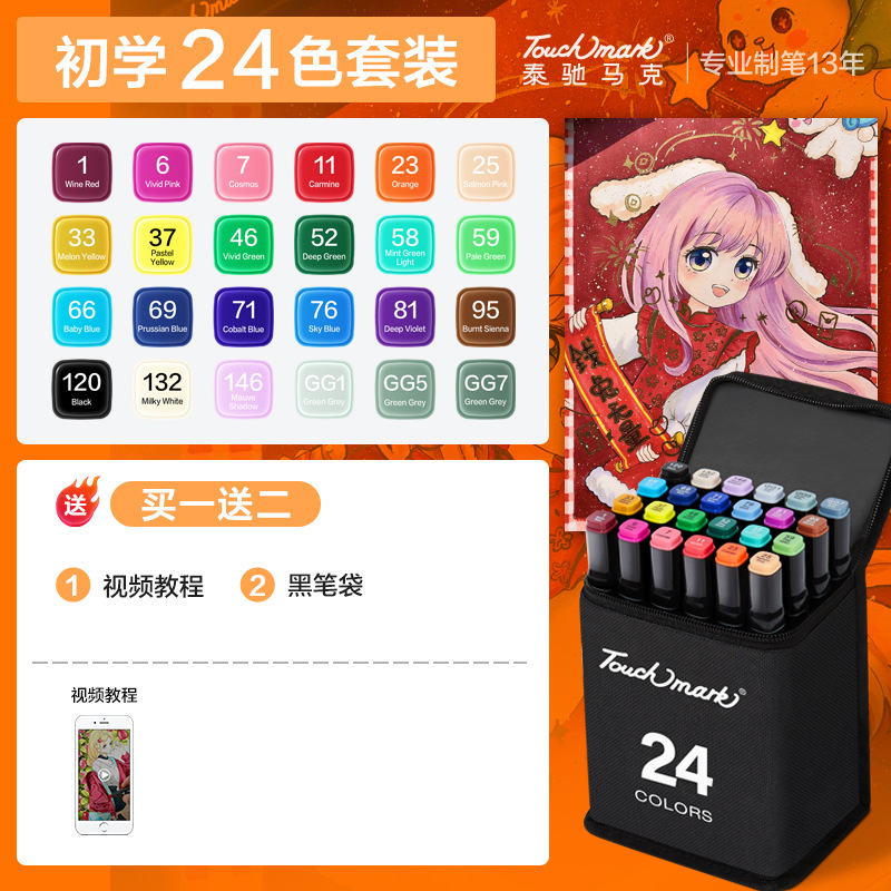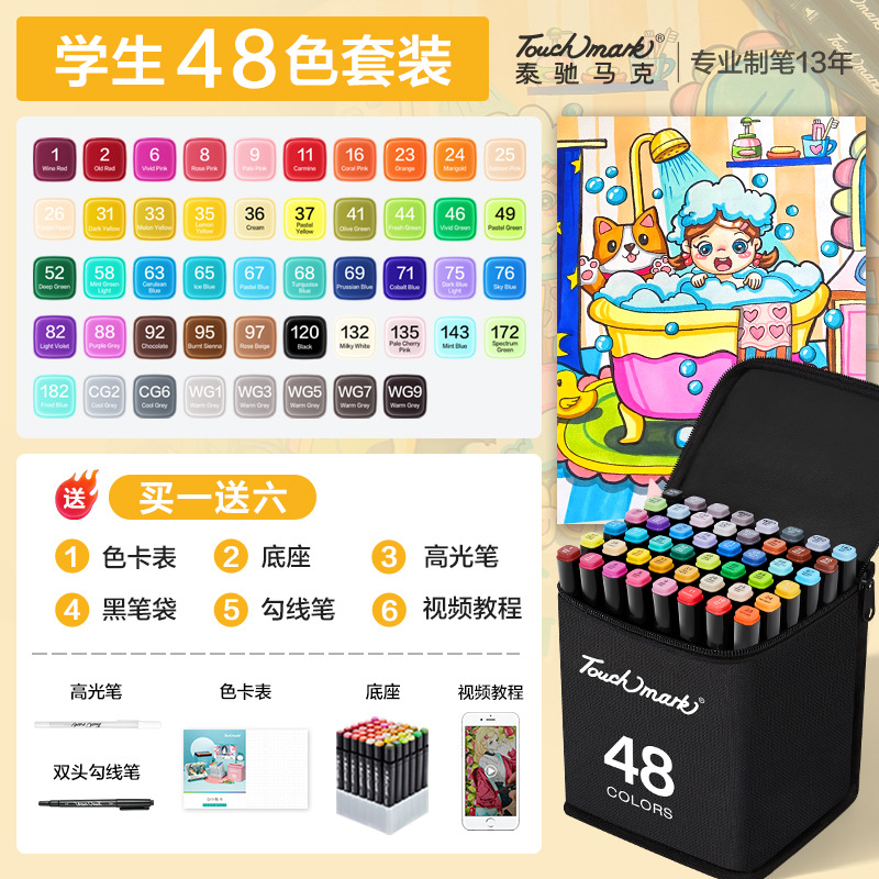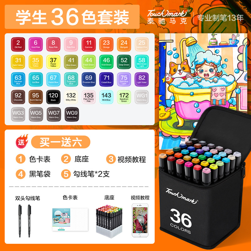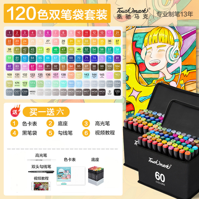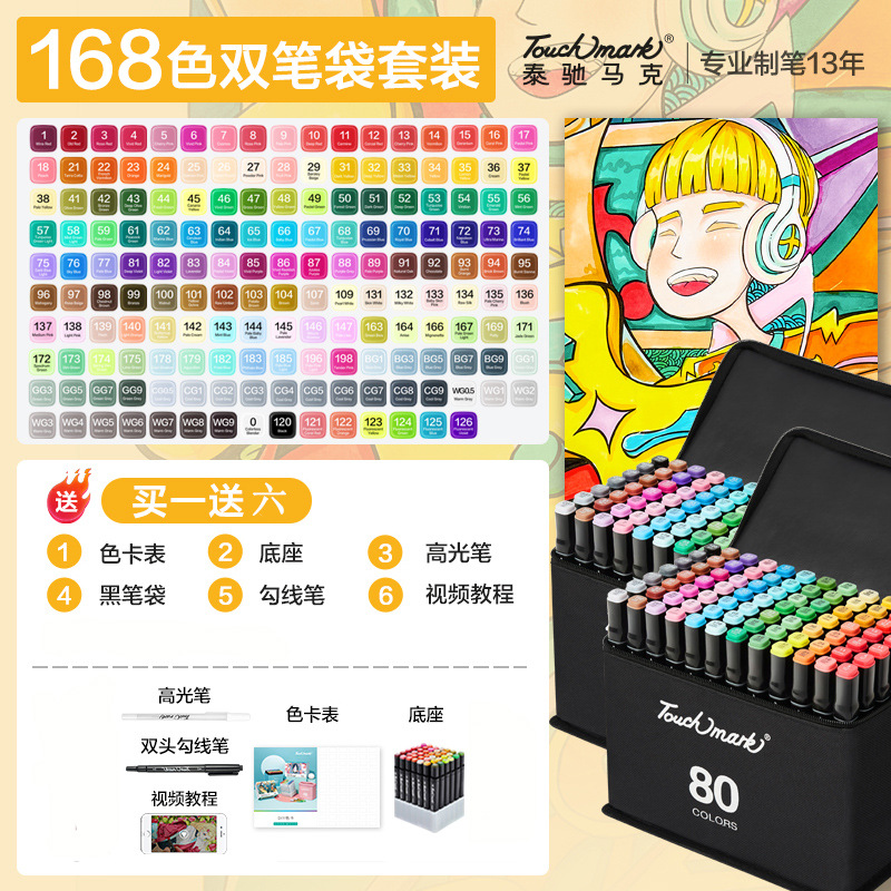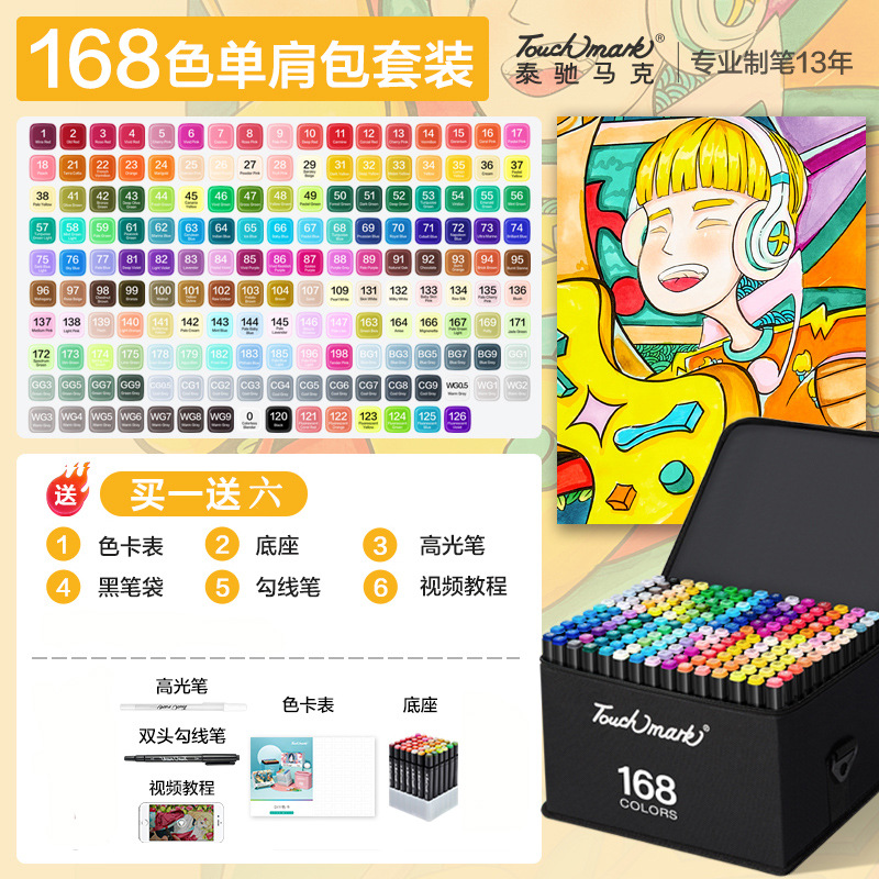 - 規格:全套168色雙黑筆袋裝【酒精油性】