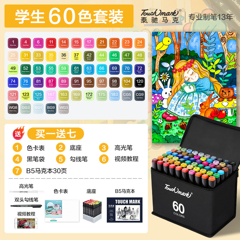 - 規格:奇樂繪-軟頭丙烯馬克筆60色套裝