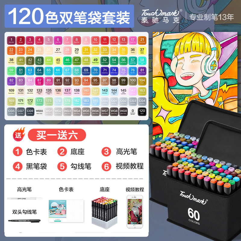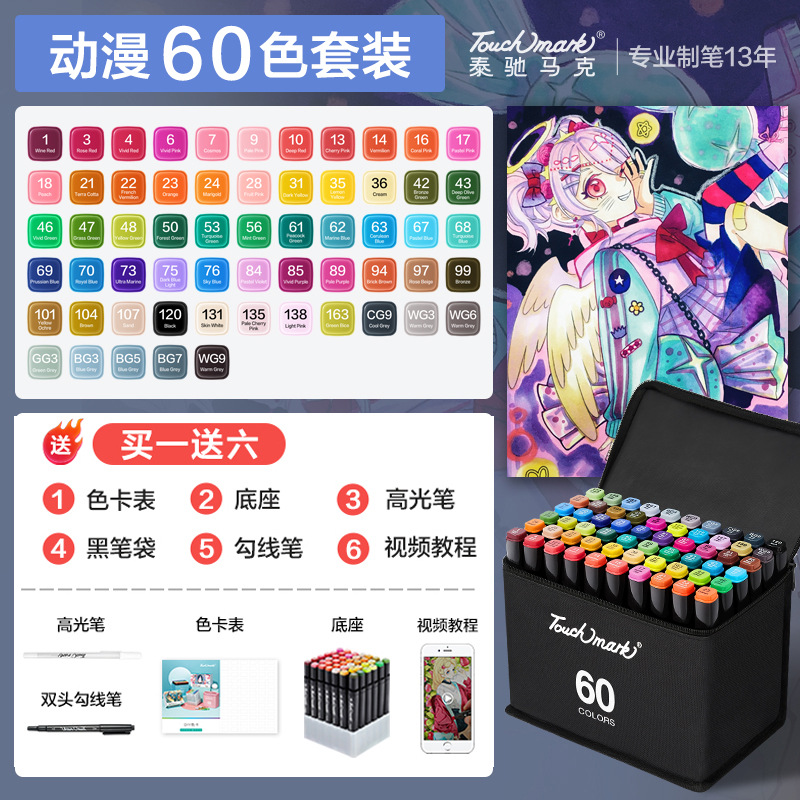- 規格:動漫60色(黑筆袋+底座)