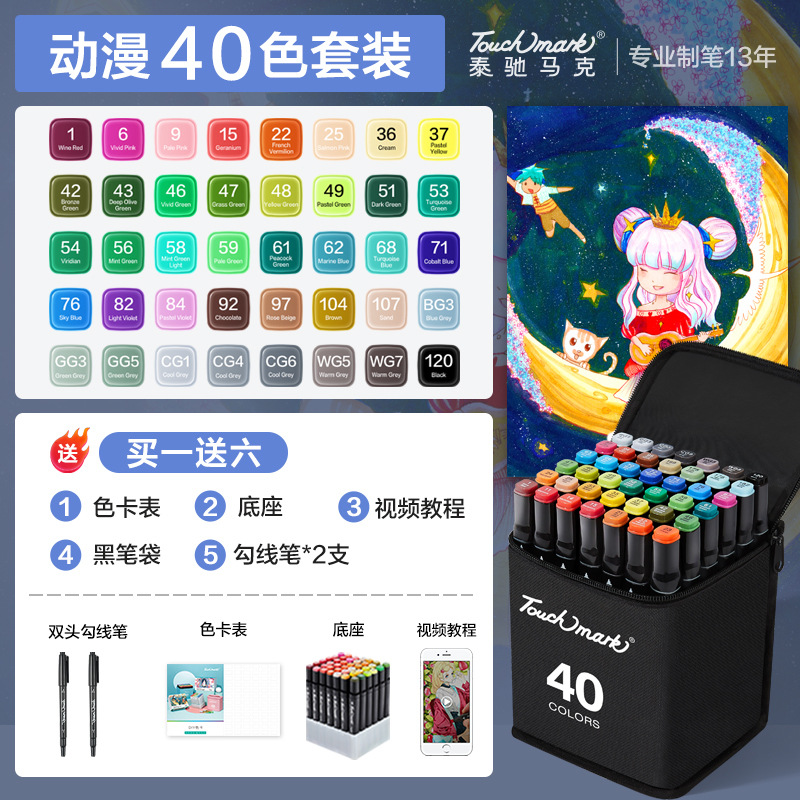 - 規格:動漫40色(黑筆袋+底座)