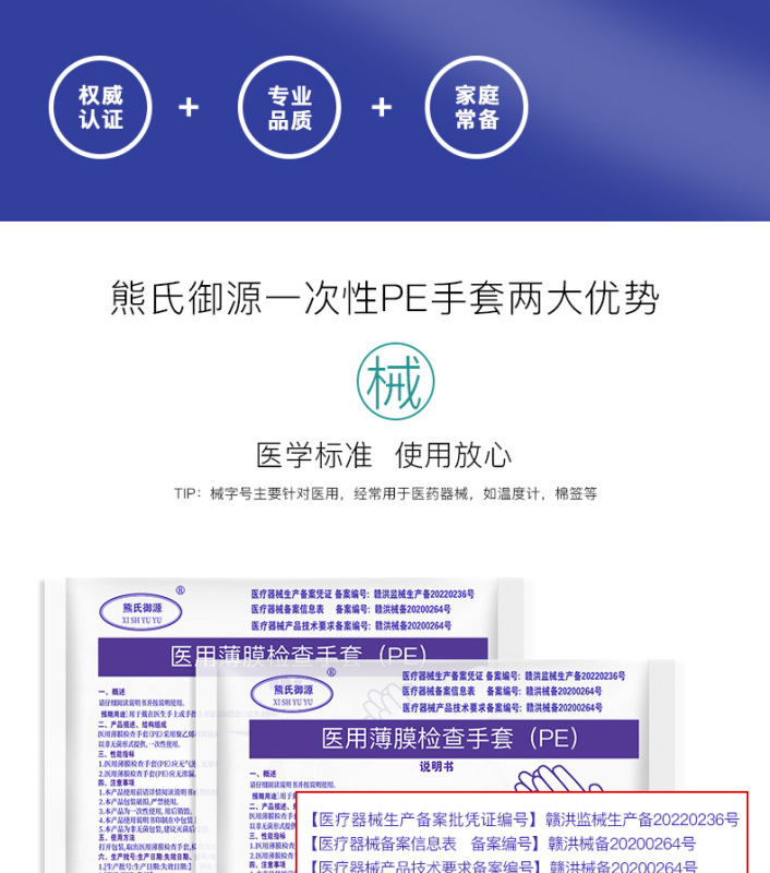 - 規格:熊氏御源-pe手套0.6克【100隻/袋】