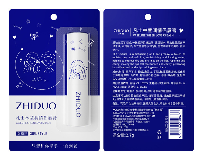 - 淨含量:致朵凡士林瑩潤情侶唇膏(女孩款)