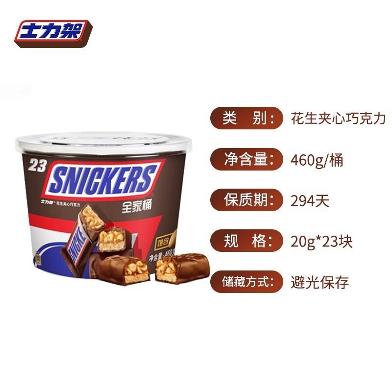 - Packaging Specification: [1 Drum] Snickers Peanut Filled Chocolate 460g (Approx. 23 Pieces)