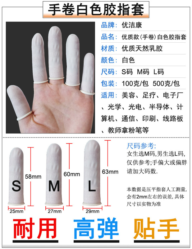 - Specification Model: Machine Roll [White Latex Finger Gloves] - 100g/bag (approximately 150 pieces)