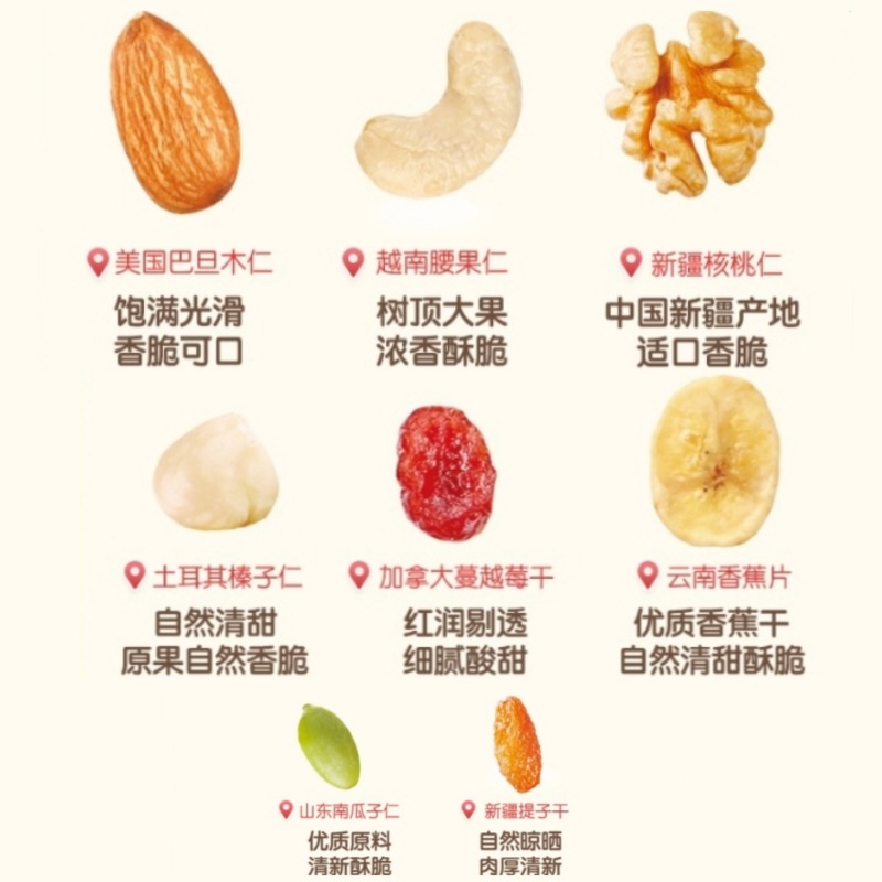 - Ingredients and Components: Walnut, Cashew, Badam, Hazelnut, Banana Dried, Pumpkin Seed, Grape Dried, Cranberry