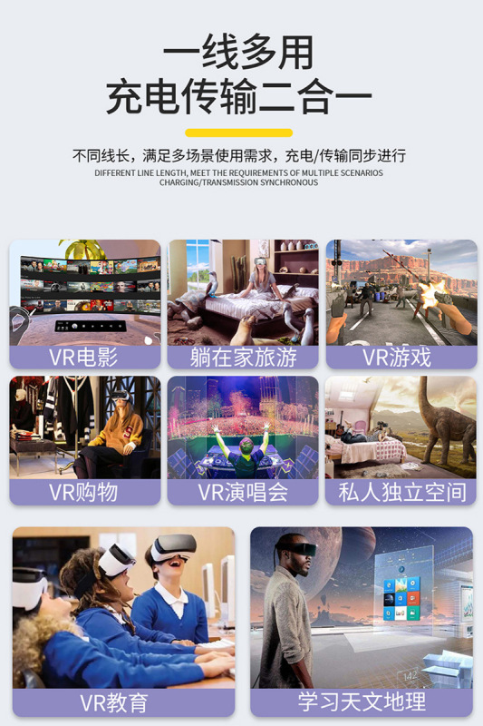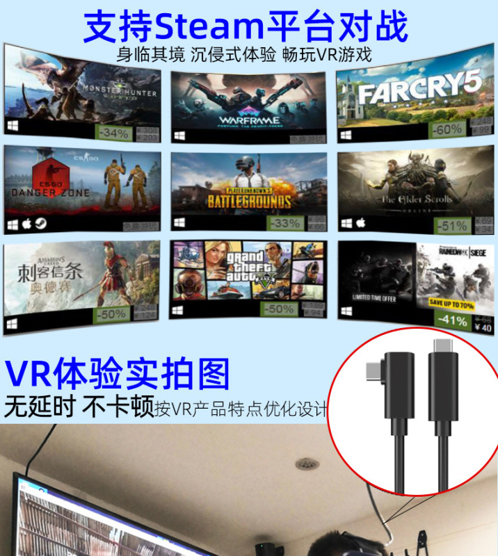- VR Streaming Cable: Oculus 1/2/3; nolopico; etc., universal for VR goggles