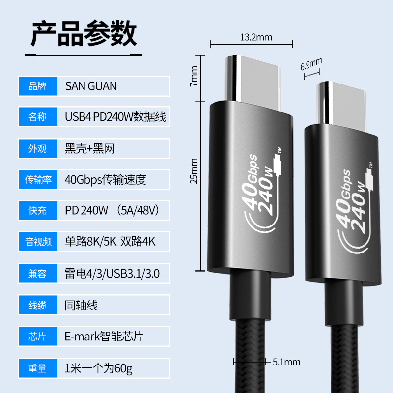 - 型號:1米黑網同軸(40Gbps+8K60Hz+240W)