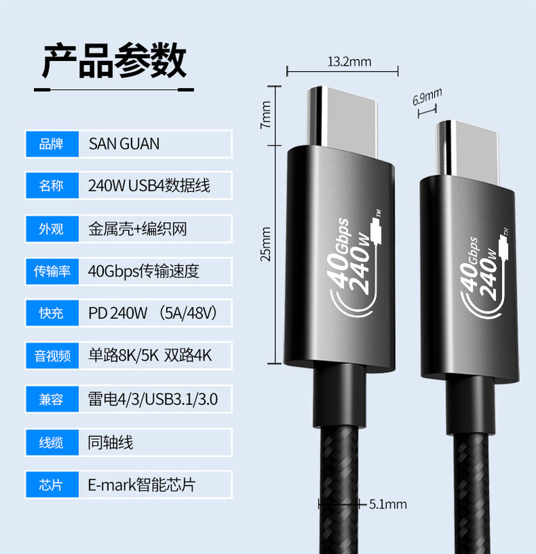 - 型號:0.2米黑灰網同軸(40Gbps+8K60Hz+240W)