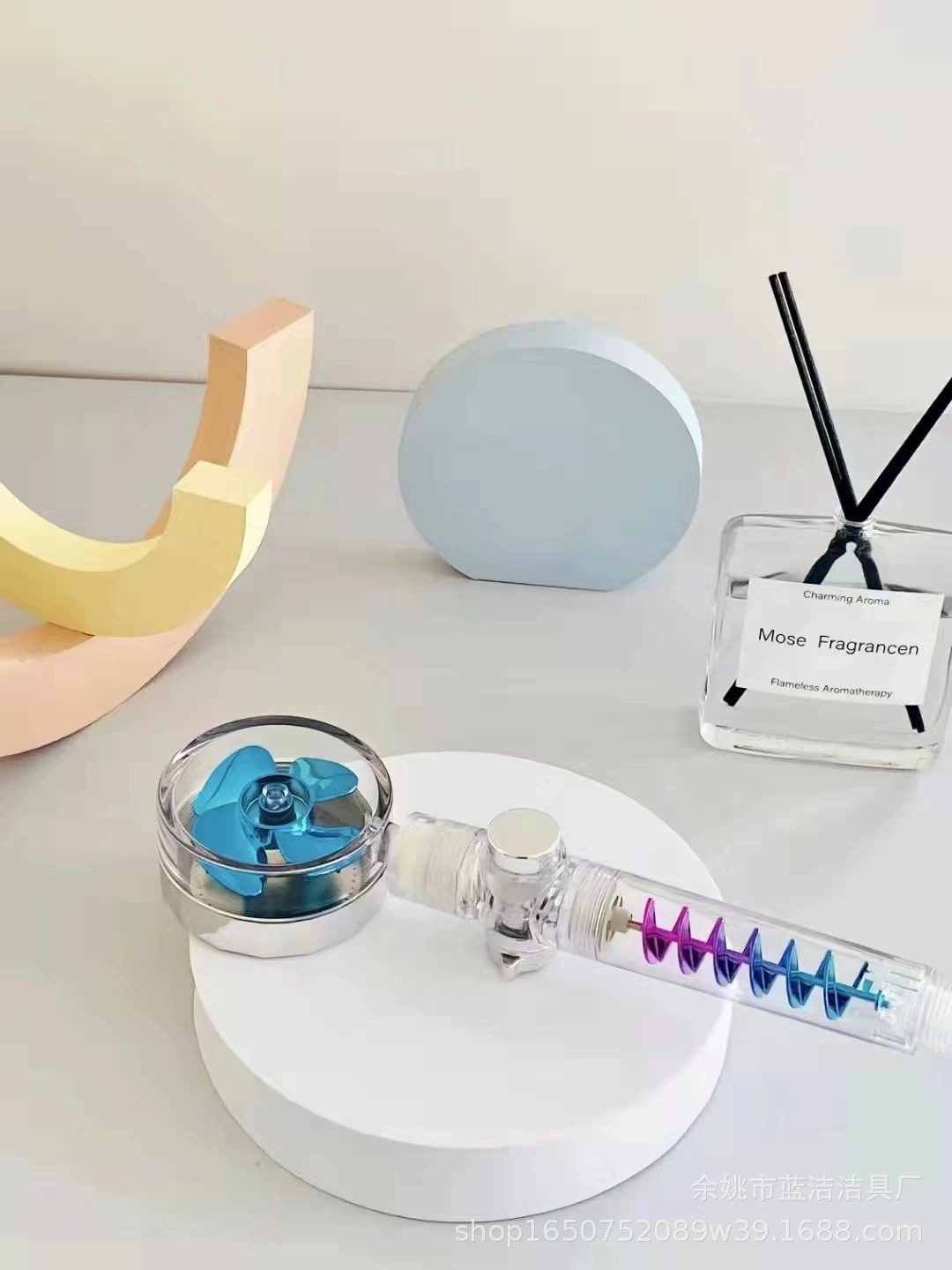 - 規格:雙螺旋風扇花灑藍