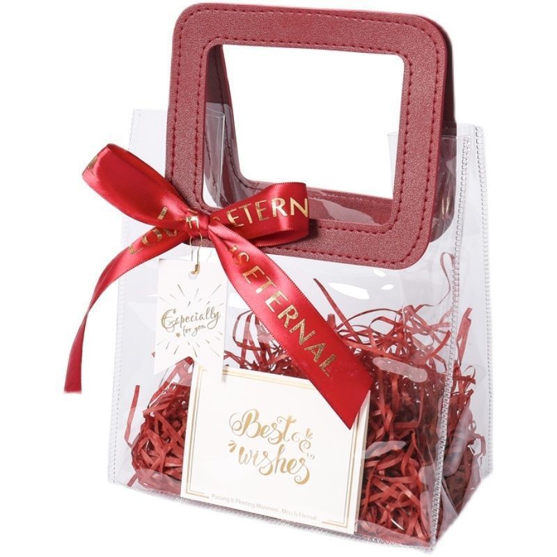 - 規格型號:透明款棗紅色方形手提100絲厚度25*15*28*0