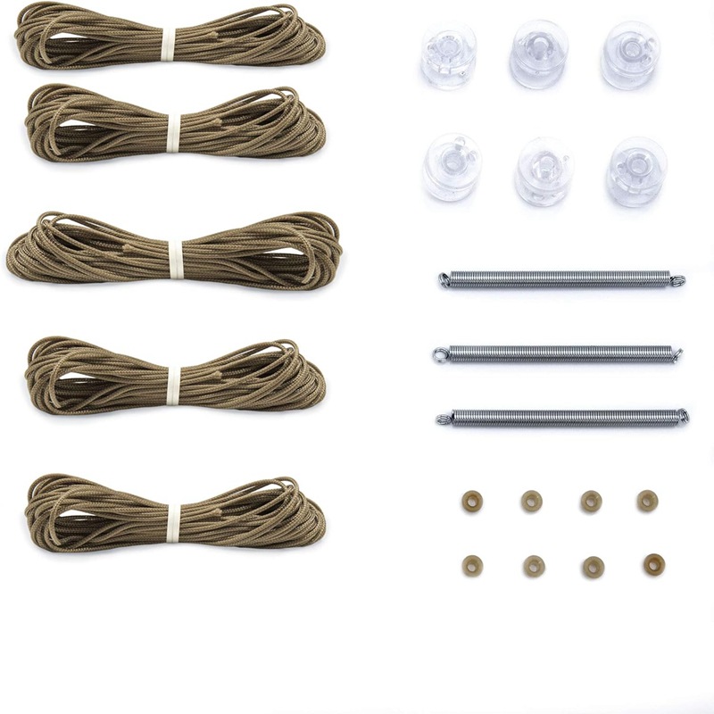 - 類型:拉繩6米5捆,滑輪10個,堵頭10個,穿繩器1把,彈簧3個